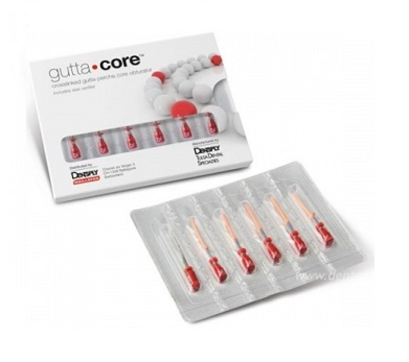 GuttaCore - обтуратор из поперечно-сшитой гуттаперчи N35, 5 штук и 1 верификатор. Отсутствует пластиковый носитель, что обеспечивает простоту изготовления штифтовой конструкции и легкость перелечивания и позволяет исполнить 3D обтурацию на узких и длинных каналах.того времени достаточно, чтобы произвести качественную герметизацию канала.